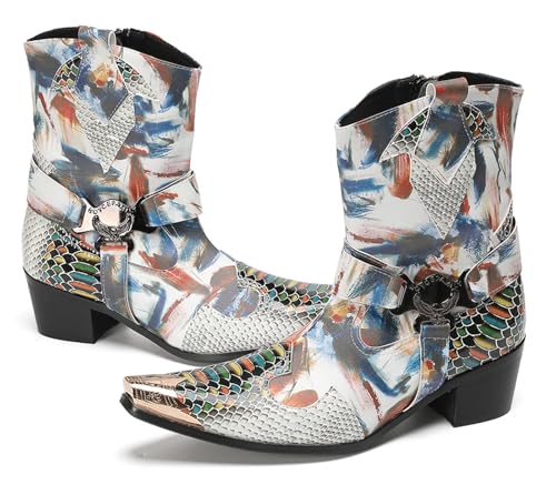 Santimon Cowboy Boot for Men Dress Casual Genuine Leather High Top Boots Metal Wingtip Zipper on Size Western Boots Fashion Wedding Singer Bar Party Ballroom Personalized Chelsea Boots 7