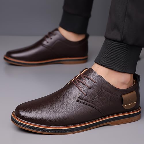 Mens Casual Leather Dress Shoes Classic Lace Up Wing Tips Oxford Sneakers Comfortable Soft Sole Non Slip Business Formal Derby Shoes for Office Work Driving Walking 7