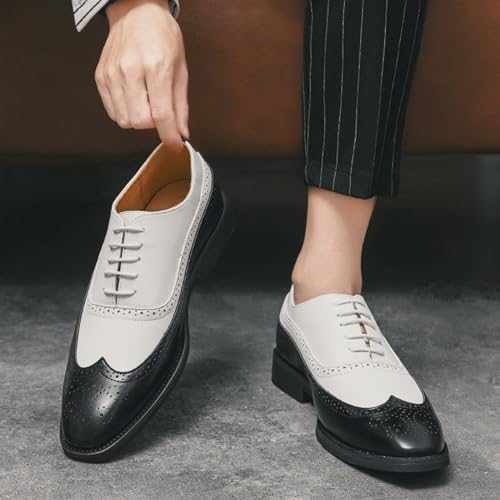 Men's Leather Wingtip Oxfords Dress Shoes, Classic lace-up Two-Tone Brogues Oxford Shoes, Fashionable high-end Formal Business Banquet Oxford Dress Shoes 5
