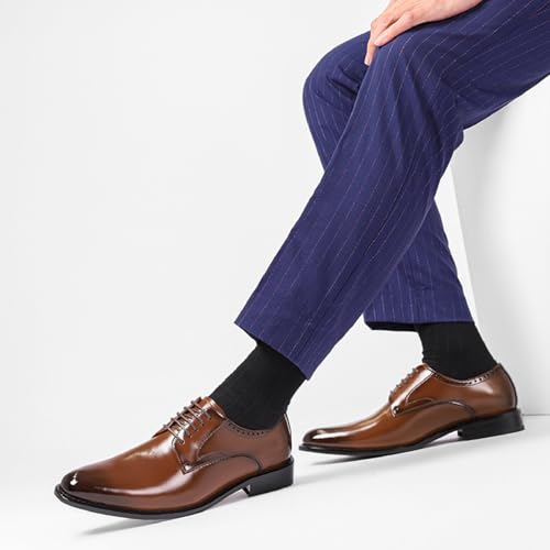 Men's Genuine Leather Formal Oxfords Classic Lace-up Comfortable Pointed Toe Derbys Dress Shoes for Wedding Office Business Leather Shoes 5
