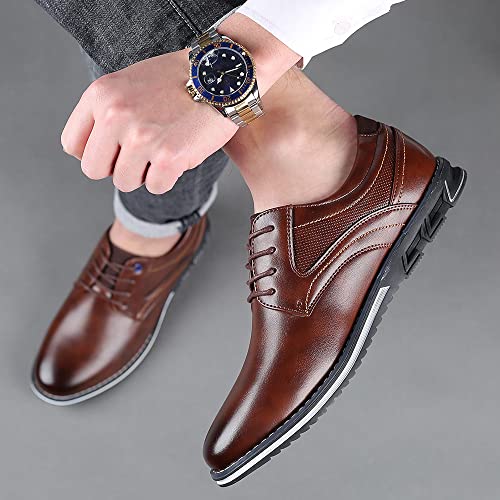 Santimon Mens Casual Walking Leather Sneakers Comfort Oxfords Lace Up Fashion Moccasin Shoes 6