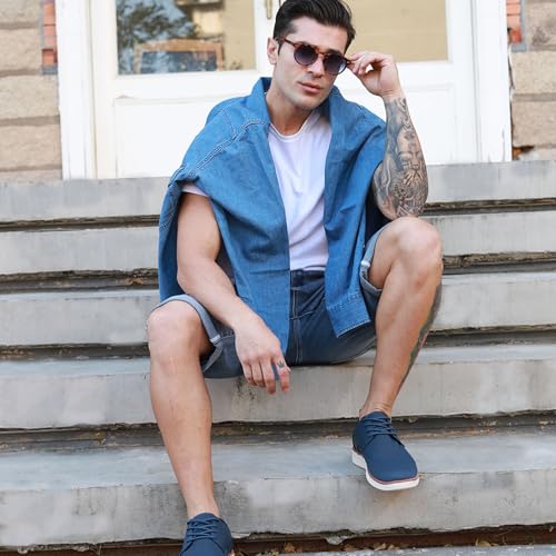 Men's Dress Sneakers Business Casual Dress Oxfords Walking Shoes Lightweight Comfortable Brogue Shoes Dark Blue 10.5 5