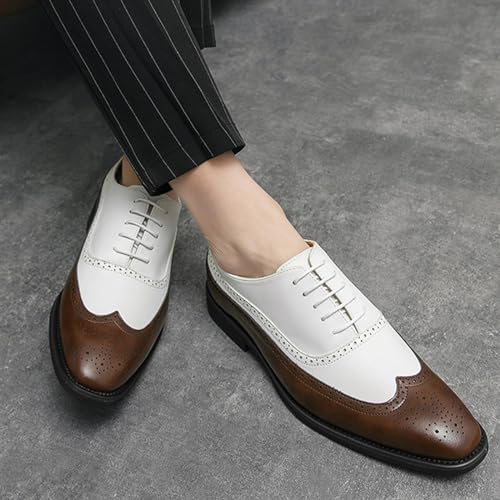 Men's Soft Leather Oxford Dress Shoes Classic Wingtip Lace-Up Brogue Oxford Shoes Stylish Business Casual Formal Work Shoes 7