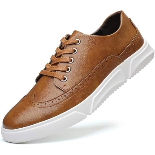 Men's Genuine Leather Wingtip Oxford Shoes Business Casual Anti-Slip Lace-Up Dress Shoes 6