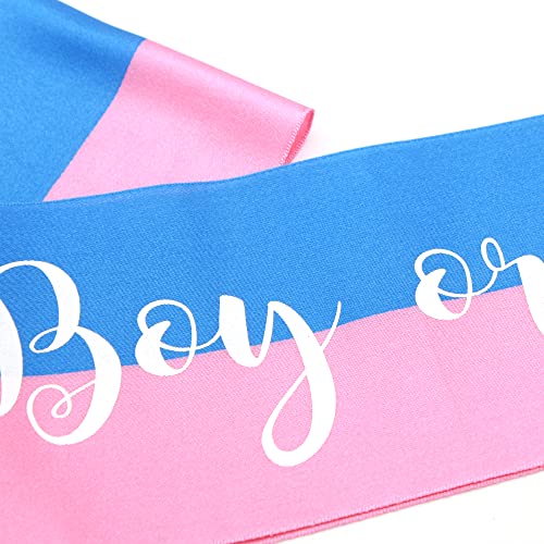 OMISS Two-Tone Blue and Pink Sash for Gender Reveal – Text: Boy or Girl? – Perfect for Mom to Be (Boy or Girl) 4