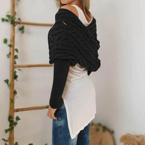 • Knitted Cable Wrap: Scarf Sweater Wrap with Sleeves Is a Sweater with Sleeves, A Knitted Cable Wrap, A Shrug for Women.This shawl has a fashionable look and can make you look slim and slender.
