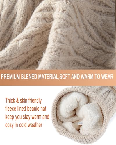 Womens Winter Beanie Hat Scarf Gloves Set Long Warm Men Fleece Lined Hat Pom Pom Touchscreen Gloves Cold Weather Gift 4