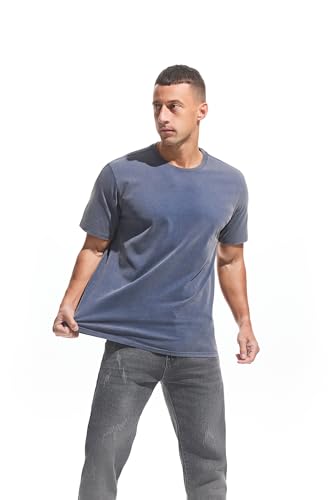 VEIISAR Men's Heavy Weight Crew Neck 100% Cotton T-Shirt - 250g/m² Thick Distressed Washed T-Shirts for Men 5