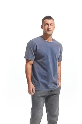 HOT ! VEIISAR Men's Heavy Weight Crew Neck 100% Cotton T-Shirt - 250g/m² Thick Distressed Washed T-Shirts for Men