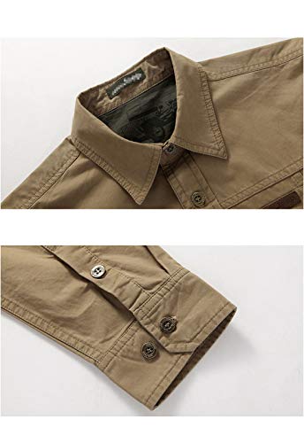 Flygo Mens Cotton Regular Fit Shirt Long Sleeve Button Down Double Pocket Dress Shirt 5