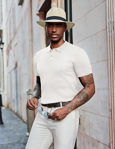 HOT ! COOFANDY Mens Knit Polo Shirts Short Sleeve Button Down Shirt Textured Casual Summer Beach Shirts