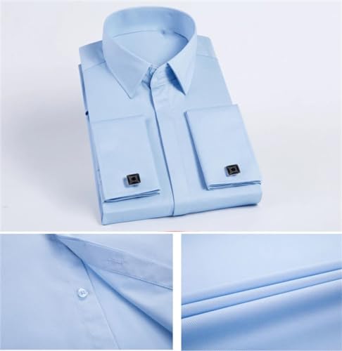 Men French Cuff Long Sleeve Tuxedo Dress Shirt Wedding Button Up Shirts with Cufflinks 5