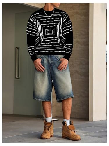 Men's Graphic Print Drop Shoulder Pullover Sweaters Crew Neck Long Sleeve Loose Fit Sweater 6