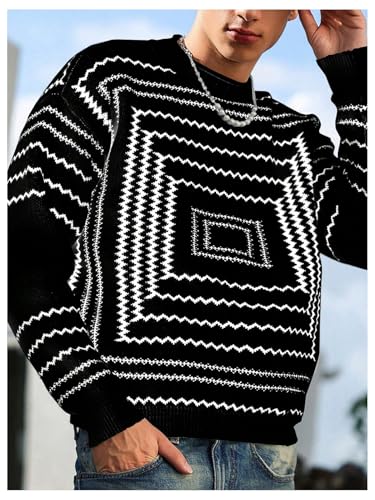 More information about Men's Graphic Print Drop Shoulder Pullover Sweaters Crew Neck Long Sleeve Loose Fit Sweater