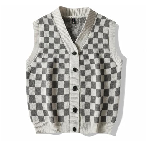 More information about Men's Plaid Sweater Vest Sleeveless V-Neck Button Cardigan Vest Fashion Office Knitted Vest Classic Fit Tank Tops
