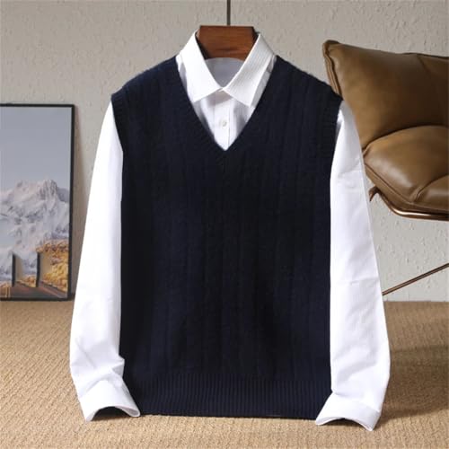 Men’S Thickened V-Neck Warm Sweater Vest Merino Wool Cashmere Solid Color Knitted Pullover Tank Top 5