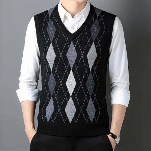 Men’S Thickened Rhomboid Grain V-Neck Sweater Vest Warm Knitted Sleeveless Pullover Tank Top 6