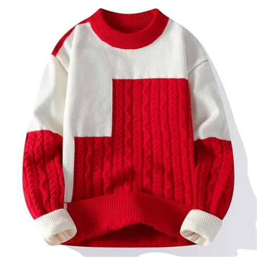 More information about Men's Warm Knit Pullover Sweater Patchwork Design O-Neck Full Sleeve Loose Fit Slim Fit Casual Sweater