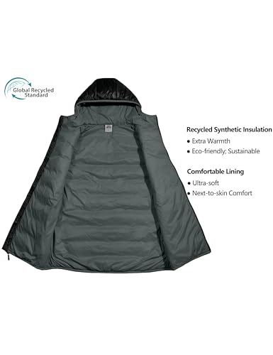 • WARM & SUSTAINABLE: This insulated puffy vest is filled with 100% post-consumer recycled polyester, reduces the impact on the Earth. Synthetic fabric can retain warmth effectively close to duck down insulation even when wet