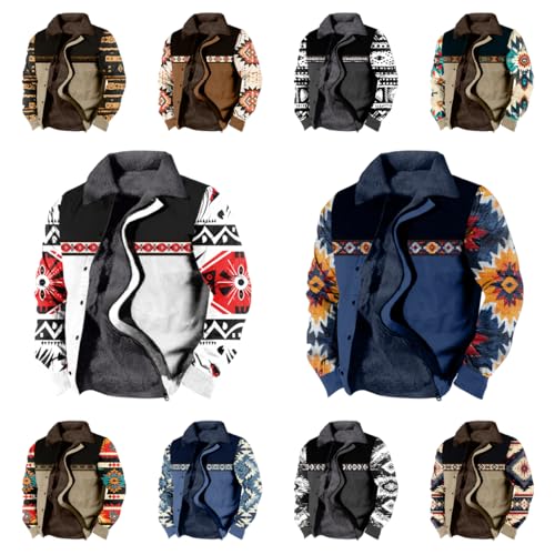HOT ! Aztec Cowboy Western Jackets for Men Long Sleeve Sherpa Fleece Zipper Retro Ethnic Print Fashion Warm Coats