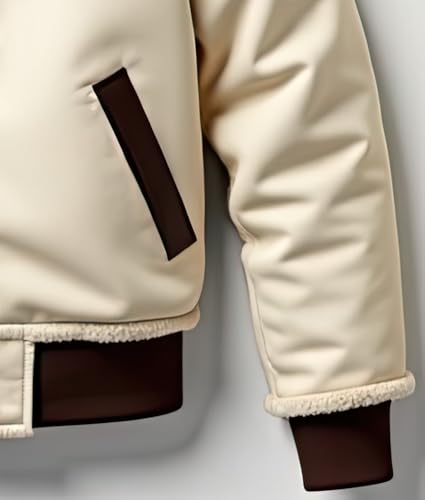 Men’s Cream Sherpa Shearling Sheepskin Leather Biker Jacket – Faux Fur Lined Modern Style Aviator Pilot B3 Bomber Jacket Men 5