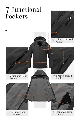 Pursky Men's Softshell Jacket Waterproof Fleece Lined Windbreaker With Removable Hood Lightweight Tactical Jacket 7
