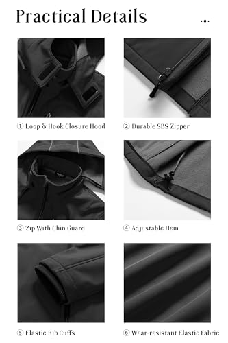 Pursky Men's Softshell Jacket Waterproof Fleece Lined Windbreaker With Removable Hood Lightweight Tactical Jacket 6