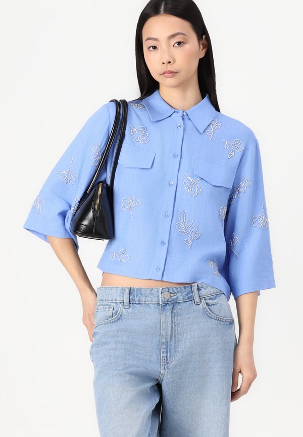 HOT ! OBJMIKA CROPPED SHIRT - Button-down blouse