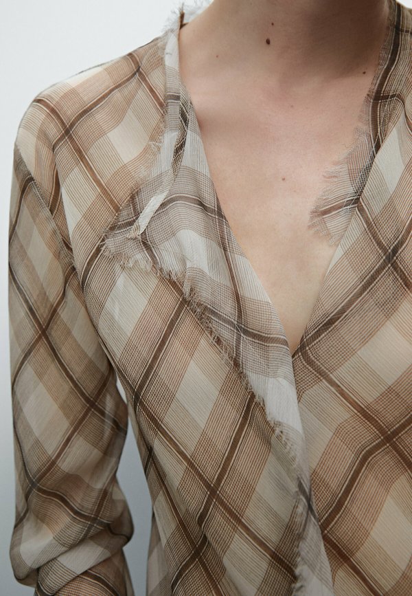 CHECK WITH FRAYED TRIMS  - Button-down blouse 5
