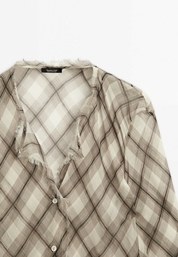 CHECK WITH FRAYED TRIMS  - Button-down blouse 3