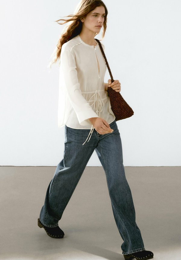 More information about SEMITRANSPARENT FLOWING WITH BOWS - Button-down blouse - beige