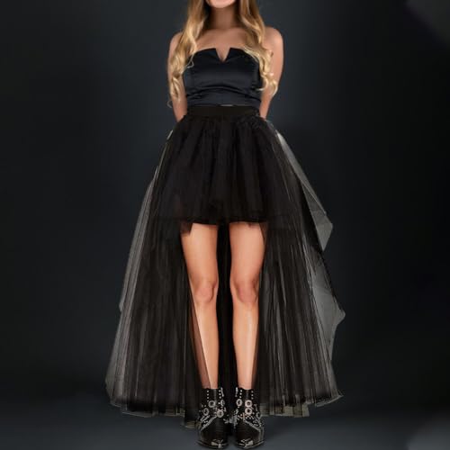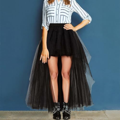 Women Hi-Lo Long Tutu Tulle Bustle Skirt Tulle Skirt A Line Tulle Dress Elastic Waist Festival Party Skirt 6