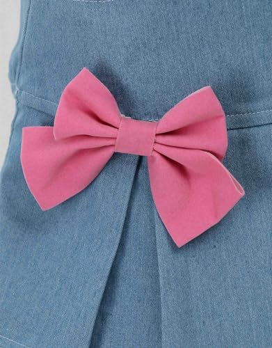 • FASHIONABLE Y2K SKIRT -- Blue denim skirt featuring a ruffle layer at the hem, a a pink belt with heart-shaped hardware, and two detachable knots on each side of the front.