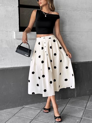 Wuitrie Polka Dot Skirt for Women 2025 Summer Causal Elastic Waist Vintage A-line Midi Skirts 5