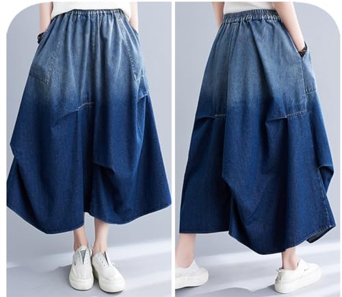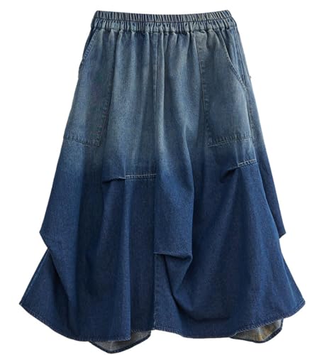 • Midi denim skirt for women, featuring intentionally runched design, which offer the skirt a stereoscopic look; Combining with trendy gradient colors, this umbrella skirt can perfectly show your own style