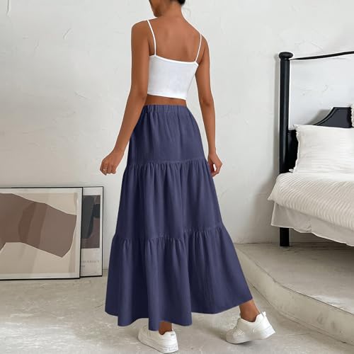 HOT ! Maxi Skirts for Women Trendy High Waisted Flowy Tiered Linen Skirt Casual Pleated A-Line Beach Long Skirts with Tie