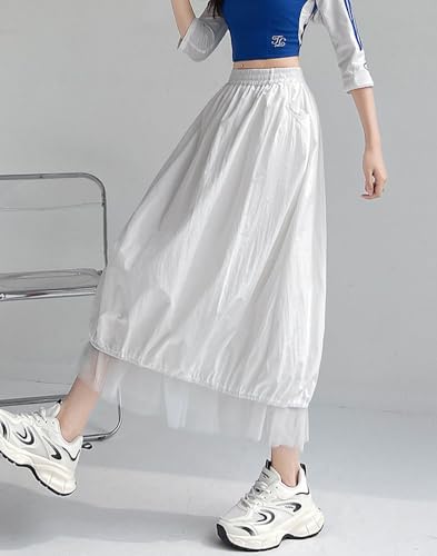 chouyatou Women's Y2k Baggy Parachute Skirt Casual Elastic Waist Mesh Spliced Bubble Puffy Long Skirt with Pockets 7