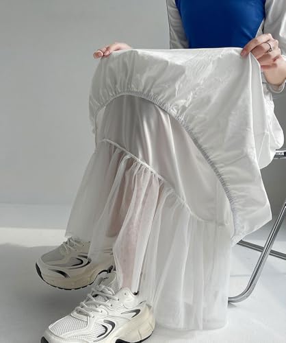 chouyatou Women's Y2k Baggy Parachute Skirt Casual Elastic Waist Mesh Spliced Bubble Puffy Long Skirt with Pockets 1