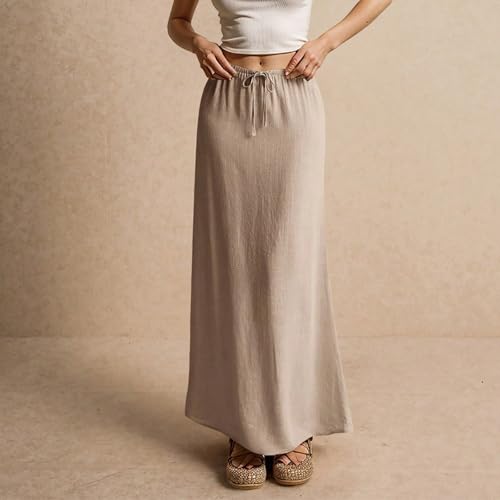 More information about Linen Maxi Skirts for Women 2025 Trendy Elastic Waist A Line Skirt Summer Flowy Long Skirts Boho Beach Cover Up Skirt