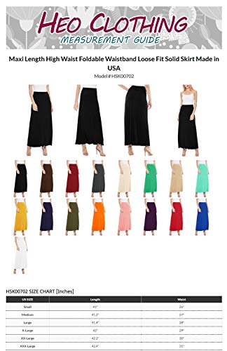 Women's Maxi Length High Waist Foldable Waistband Loose Fit Solid Skirt Made in USA 1