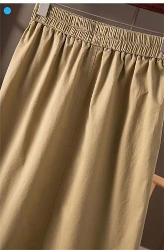 Women's Cotton Elastic Waist Slimming A Line Skirt Solid Color with Large Pocket 5