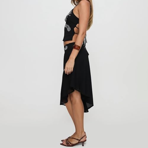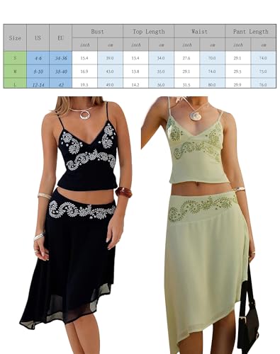 • DESIGN: Sets for women clothing; Skirt sets women two piece outfits; Cami tops for women use floral print, spaghetti strap, v-neck design; Asymmetrical hem midi skirts, chic and stylish
