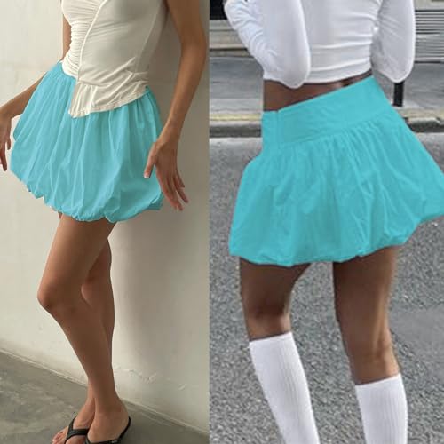 Bubble Skirts for Women Casual Pleated Ruffle Hem A Line Mini Skirt Y2K Puffy Skirts Streetwear 6