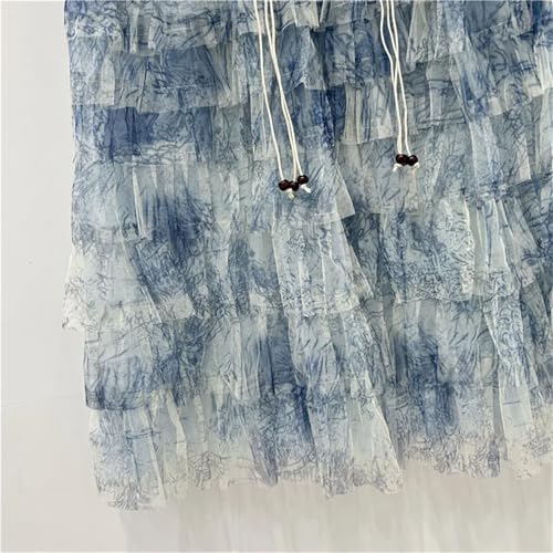 HOT ! Women's Tie-Dye Denim Maxi Skirt, Gauze Patchwork with Distressed Hem Detail