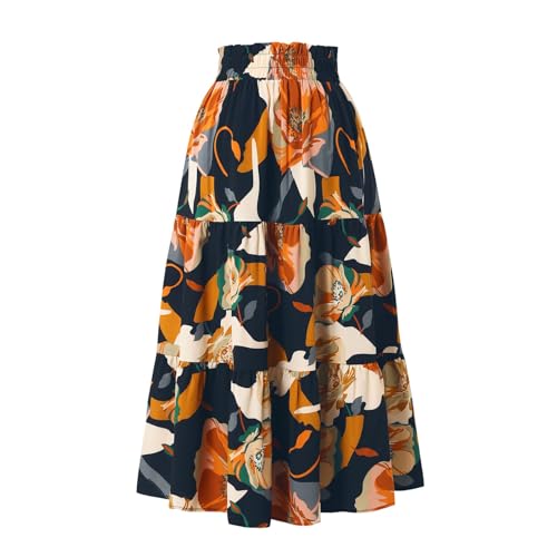 HOT ! Floral Long Skirts for Women Summer Boho Elastic Waist Tiered Maxi Skirt Flowy A Line African Print Beach Skirt