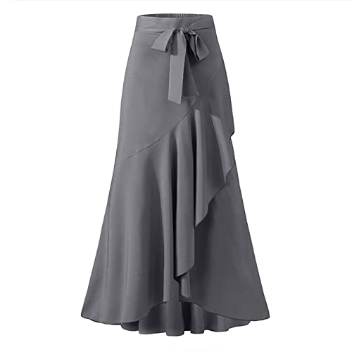 More information about Women's Long Skirts Solid Color Elegant Bow Belt Flowy Culottes High Waist Swing Irregular Ruffles Maxi Skirt 2024