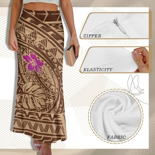 • DESIGN:Polynesia Style Pacific Tattoo Ethnic Tribal Pattern Palm Leaf Hibiscus Plumeria Samoa Puletasi Maori Hawaii Tahiti. This Long Maxi Skirt Goes With Zipper High Waist Design, Unique And Exquisite Polynesian Print, Ruffle Hem.
