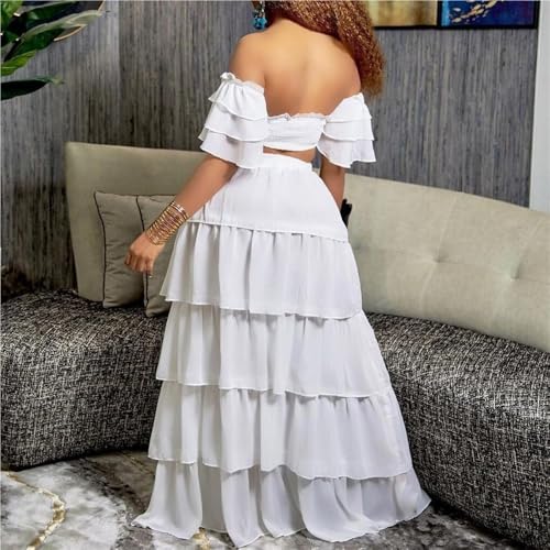 More information about Women’s Summer Two Piece Dress Short Sleeve Top Long Skirt Casual Party Evening White Yellow(Yellow,M)
