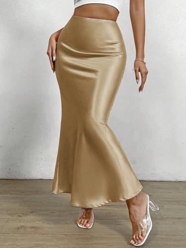 • Style:Elegant / Details:Zipper / Type:Mermaid / Style:Party / Color:Gold / Pattern Type:Plain / Waist Line:Natural / Length:Maxi / Fit Type:Regular Fit / Fabric:Slight Stretch / Material:Woven Fabric / Composition:100% Polyester / Care Instructions:Machine wash or professional dry clean / Sheer:No