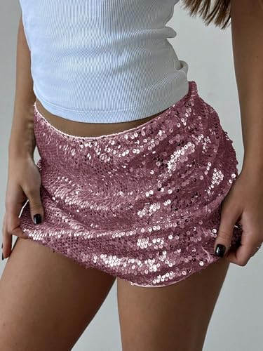 • Women's fashion skirt 2025 casual, / Pink / 100.0% Polyester / Low Waist / Night Out / Medium Stretch, Non-Stretch / Hand wash or professional dry clean / Bodycon / Sequins / Mini / Plain, All Over Print / Party / Sequin, Ruched, Zipper